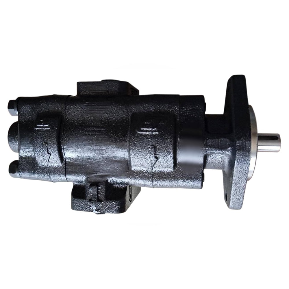 Bomba hidráulica GENERICA serie P330 doble cuerpo para alzadora de caña BMI, con flecha lisa de cuña, montaje de 2 tornillos.